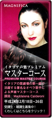 でも、イタリアで素晴らしい技術を学ぶことで長年の悩みが払拭され、しかも新たな自分の可能性をも見出すことができました。私のその時の喜びといったら、それはまさに「言葉にできない」程のものでした。私はこの感動を一人でも多くの人に伝えたいと思い、このマニフィカ・カンタービレ声楽教室を開校しました。皆さんもこの喜びを一緒に感じてみませんか?